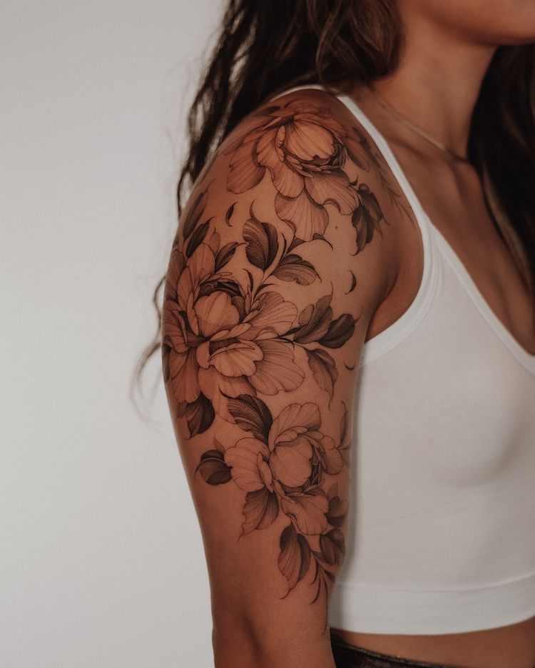 07Feminine floral shoulder tattoo