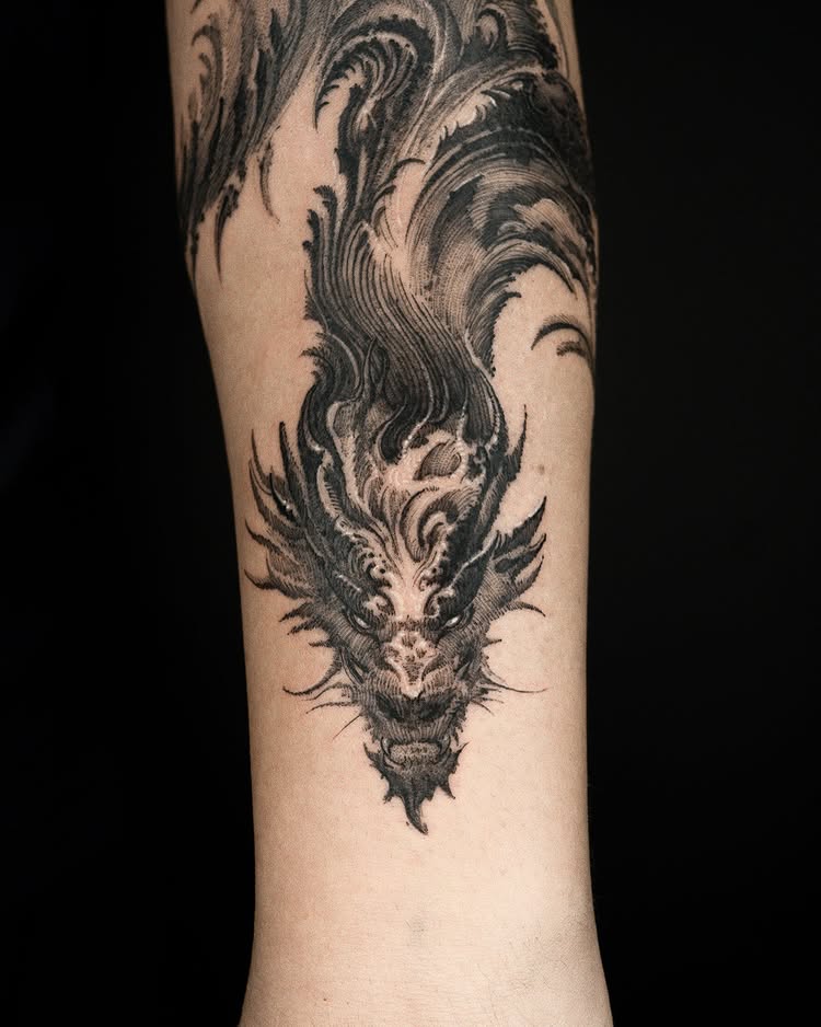 03Dynamic dragon tattoo in sketch style