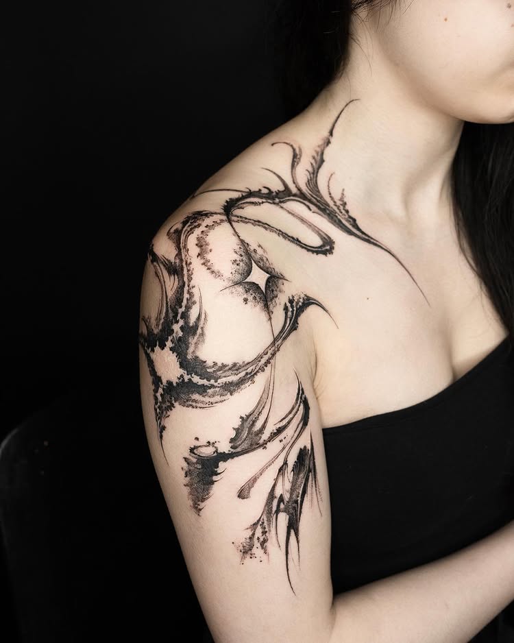 06Shoulder tattoo with abstract flow